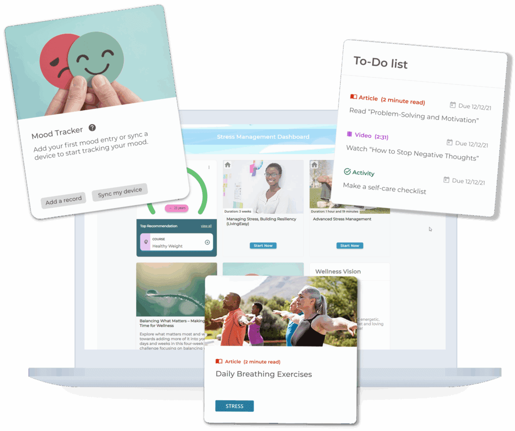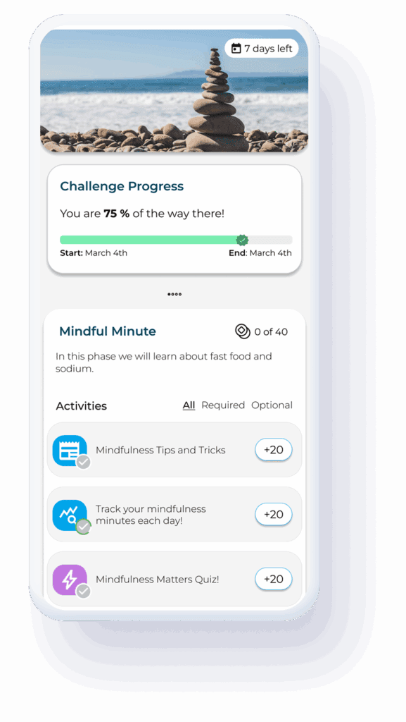 From stress and burnout to inactivity, nutrition, and chronic disease risks — our platform delivers coaching, challenges, and content to create long-term health outcomes.