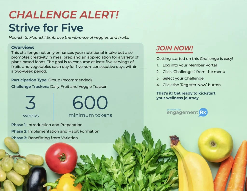 From stress reduction and step tracking to hydration, nutrition, and goal setting — our challenge templates cover the most important health behaviors.