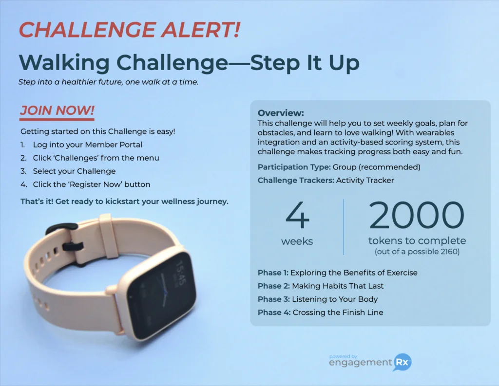 Challenges are designed to support real habit-building — not just participation — helping employees create momentum that lasts.